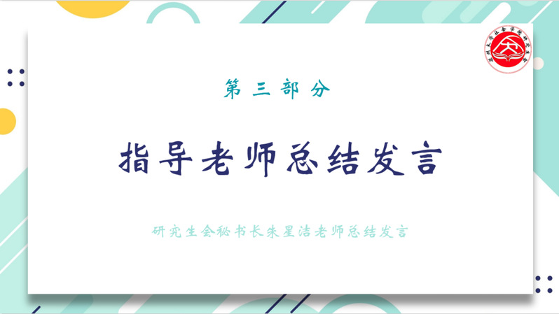 第三部分为指导老师总结发言。朱星洁老师对于研会工作发展提出了几点建议: