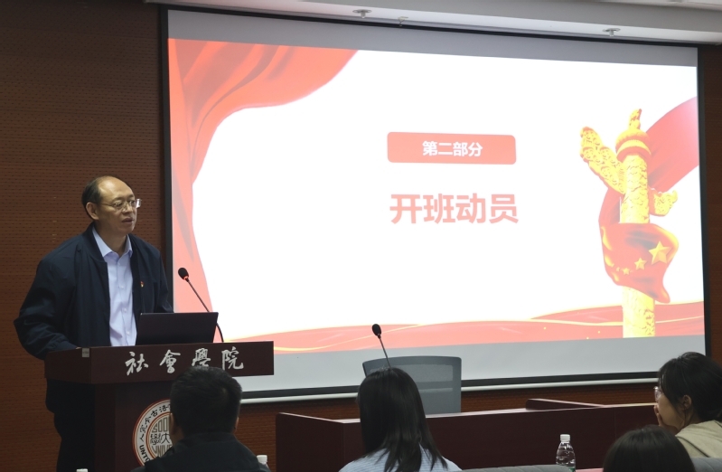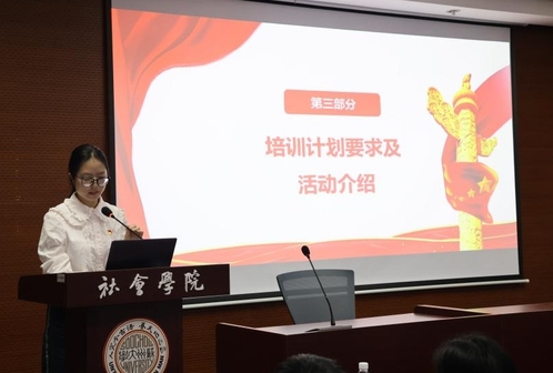 随后,学院分党校培训部负责人冯嘉如同学详细解读了本期培训班的培训计划及结业要求,并对党建书屋、“模拟两会”等常规活动、红色主题实践活动以及其他特色文化活动进行详细介绍。她强调,全体学员要严格遵守培训纪律,以端正的态度参与理论学习与社会实践,真正做到学有所思、学有所悟、悟有所行、行有所效。