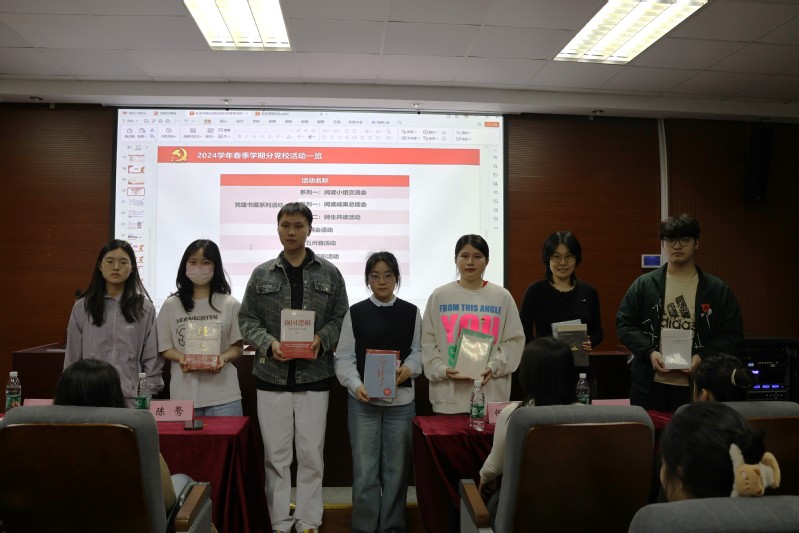 活动的第四部分是赠书环节。为激励学员学习党的理论知识,本期培训班围绕党史学习教育、专精覃思、新时代思想、润泽心灵四个主题,购置了二十余本学习用书。分党校活动部何丙秋同学为积极分子班、发展对象班和预备党员班学员代表赠书,希望学员以书为媒,夯实理论基础,提升党性修养,在阅读中补足精神之“钙”。