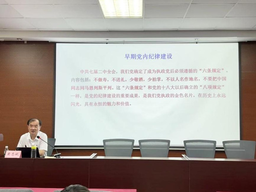 黄志斌部长围绕历史演进、中央八项规定具体内容及党员修身律己三个方面,深入阐述了党的作风建设和纪律规矩的重要意义,强调在新时代背景下,全党必须以党的光荣传统和优良作风为镜,持续推进作风建设,严明纪律规矩。