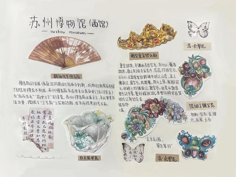 、艺术学院专业特色,组建了17人的美育实践团队,联合斜塘街道、平江街道10个暑托班,在苏州3个区内,面向200余名青少年开展10余次宣讲,开展了长达两个月的“中华文物我来画,走进苏州博物馆”主题实践活动。“笔墨苏珍”实践团成功入选中央社会工作部、团中央组织开展的2024年“中华文物保护传承”志愿服务项目。