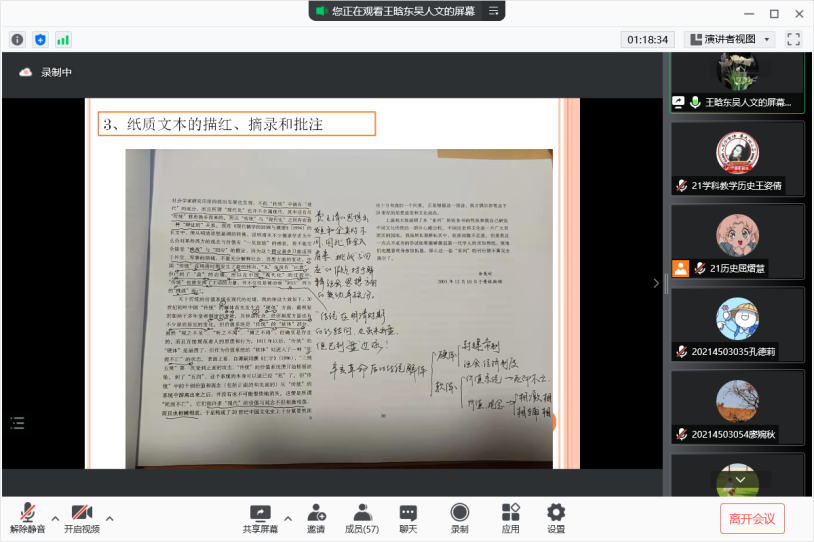 应四虎影院 “陪伴计划”邀请,历史系副主任、东吴人文数字平台负责人王晗老师于2021年10月23日在腾讯会议平台为21级历史(师范)的新生和东吴人文工作坊21级新成员进行了主题为《“我在苏大学历史”之“史学习作要领”》的讲座。
