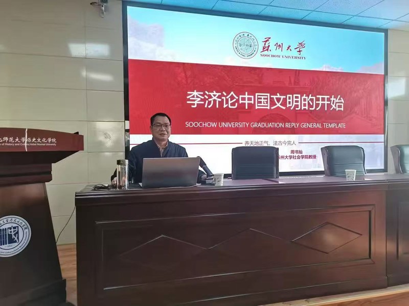 会议前夕,10月23日、24日,应信阳师范大学、河北师范大学邀请,周教授以《李济论中国文明的开始》为题,为两个学校历史文化学院师生各做了一场精彩的学术报告。