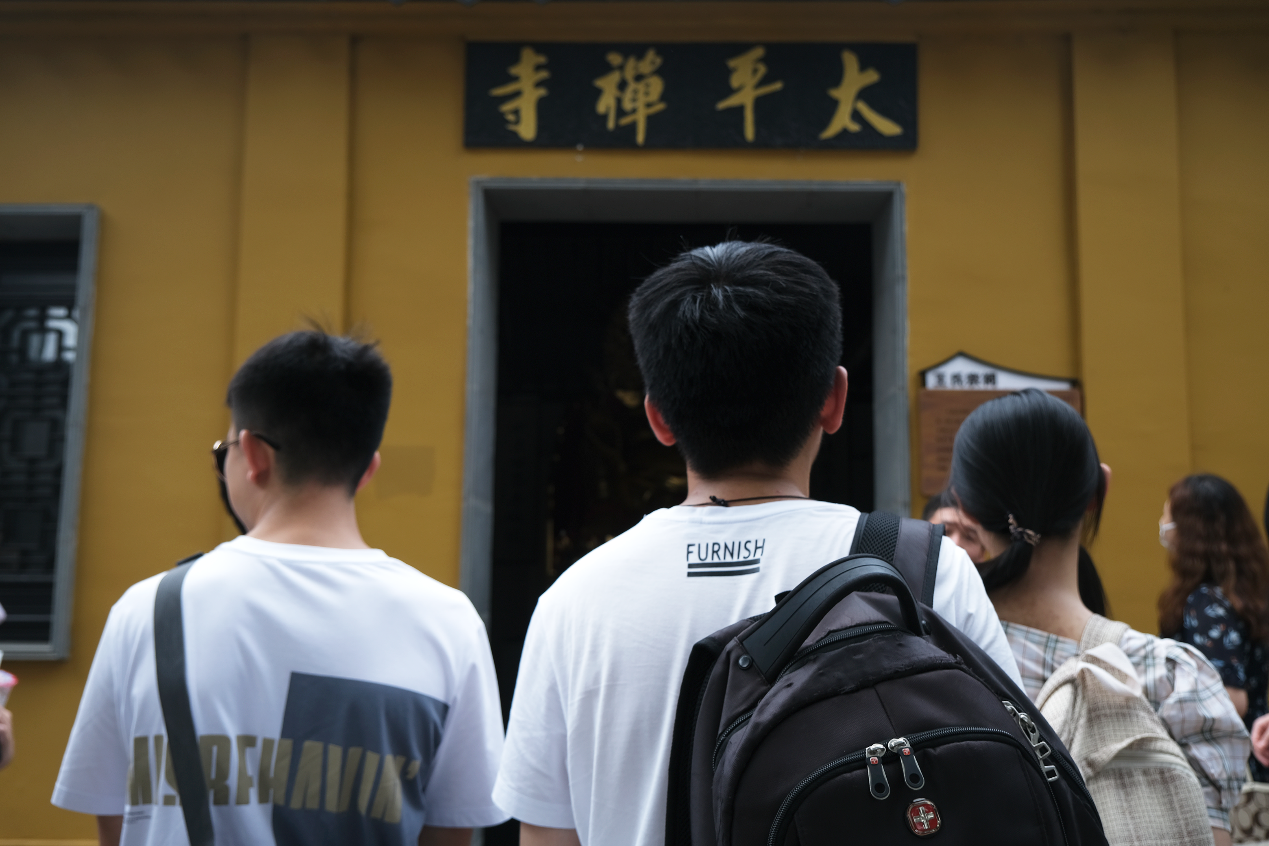 简单的午饭后,同学们来到太平老街进行下午的考察。太平老街周边风景秀美,小桥流水,有诸多名胜古迹。同学们首先来到太平禅寺参观游览,寺中留存的遗迹证明了民间信仰向佛教信仰的转变,寺庙和当地宗族文化的融合也十分紧密,是王氏宗祠的所在地。祠堂前有一棵近千年的银杏树,是苏州现存树形最大的名木古树。元末为王总管贵三祠堂,明末称永里庵,清代雍正二年在庵内修建了猛将堂。太平禅寺的历史变迁,折射出宗族文化、民间信仰和宗教传播之间的共生互动,启发着同学们的思考。