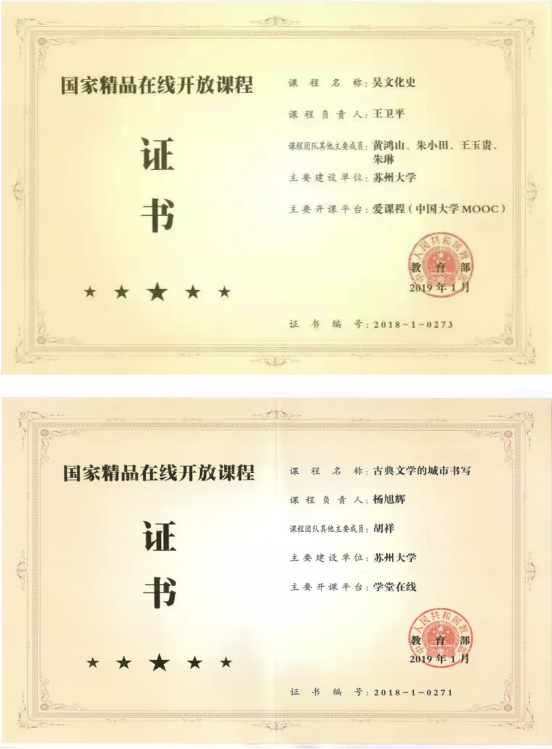 (团队课程“吴文化史”“古典文学的城市书写”分别被评为国家精品在线开放课程)