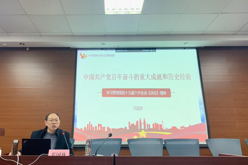 党委于1005-5448学术报告厅组织召开了主题为“中国共产党百年奋斗的重大成就和历史经验”的学习贯彻党的十九届六中全会精神辅导报告会。院党委书记邓国林作专题辅导,研究生辅导员朱星洁老师和2021级全体研究生参加了本次活动。
