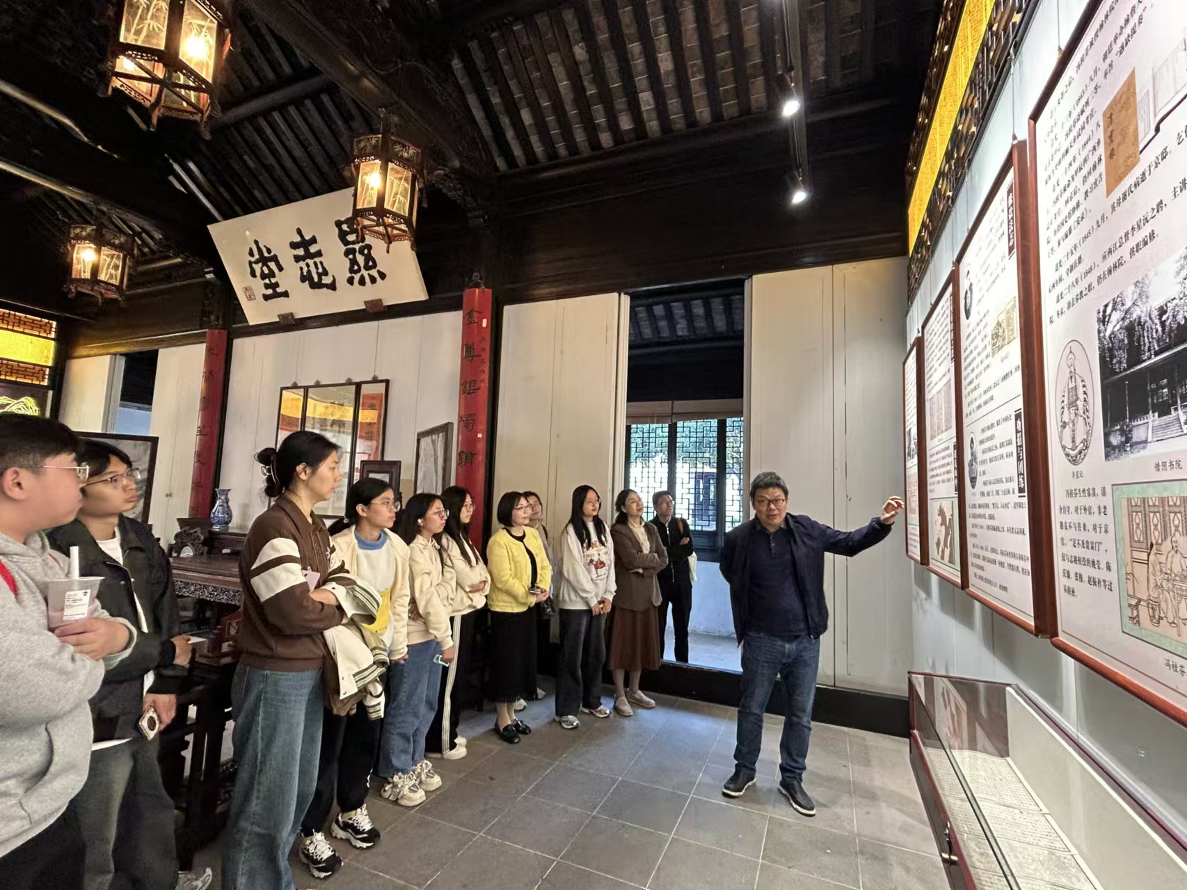 随后同学们来到了位于木渎古镇的冯桂芬故居。冯桂芬是晚清著名思想家,亦是改良主义的先驱,曾在科举考试中摘得榜眼,故其居所大门上有一牌匾上书“榜眼府第”。走进故居,黄院长为同学们仔细介绍了冯桂芬的生平履历。同学们从中体会到冯桂芬本人的人格魅力以及晚清时期思想领域的变革。这对同学们专业知识的提升大有裨益。