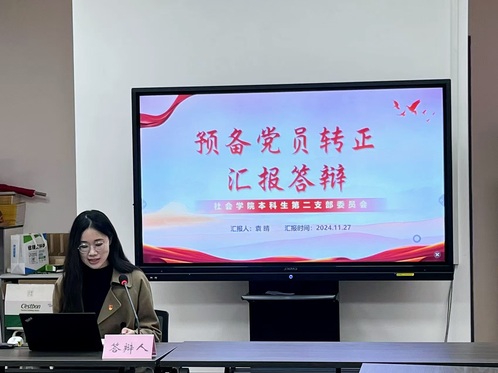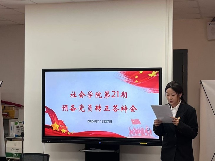 为加强高素质学生党员队伍建设,进一步增强对预备党员的培养、教育和考察,提高党员发展质量,根据《江苏省大学生党员发展工作“三投票三公示一答辩”实施办法》要求,11月27日下午,四虎影院 第二十一期预备党员转正答辩会在学院党建会议室举行。学院党委书记邓国林、党委副书记兼副院长朱今、专职组织员李玲、团委副书记兼研究生第四党支部书记朱星洁、本科生第二党支部书记孙柏林、研究生第一党支部书记邵至央出席活动。各学生党支部书记、预备党员代表参加活动。活动由2023级信息资源管理专业范芷瑜同学主持。