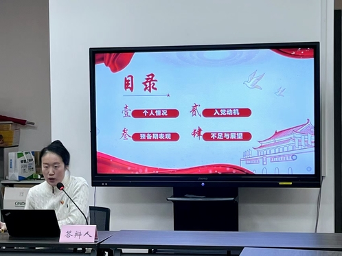 各位答辩评委围绕党的二十大报告、全国两会精神、《中国共产党纪律处分条例》、习近平总书记关于教育重要论述等理论知识以及六位预备党员的汇报内容进行提问。预备党员根据自身实际情况,结合理论学习和实践成果逐一作答。最后,答辩评委对预备党员在预备期间的表现予以肯定,进行现场投票表决。