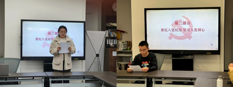 活动的第三部分,由研究生第二党支部上年度民主评议优秀党员代表杨雯静与研究生第三党支部新生党员代表庄涵分享了自己加入中国共产党的心路历程,他们朴实真挚的分享,深刻诠释了作为青年党员的使命与担当。
