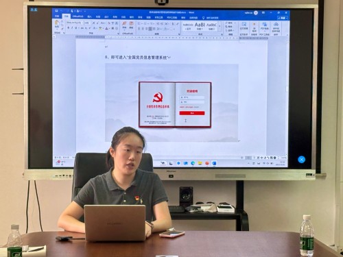 研究生第三党支部书记李瑶月进行支部工作经验分享。她详细介绍了全国党员管理信息系统和苏州智慧党建平台的使用方法,并结合自身工作经验,从加强支部教育管理工作、听取支部内党员意见和心声、严格把关党员发展工作等方面介绍了工作方法和经验,为其他支部的工作提供了借鉴与启示。