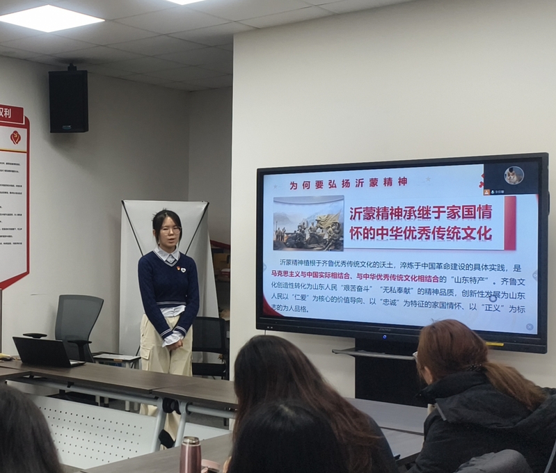 天地英雄气,千秋尚凛然。为进一步传承革命精神,走好新一代的长征路,研究生第四党支部的卞韵弘和张凯越同学分享了遵义会议和沂蒙精神中的经典人物故事。他们通过生动的讲述和丰富的史料,将一个个鲜活的英雄形象呈现在大家面前,让同学们真切地感受到了革命英雄的独特魅力。