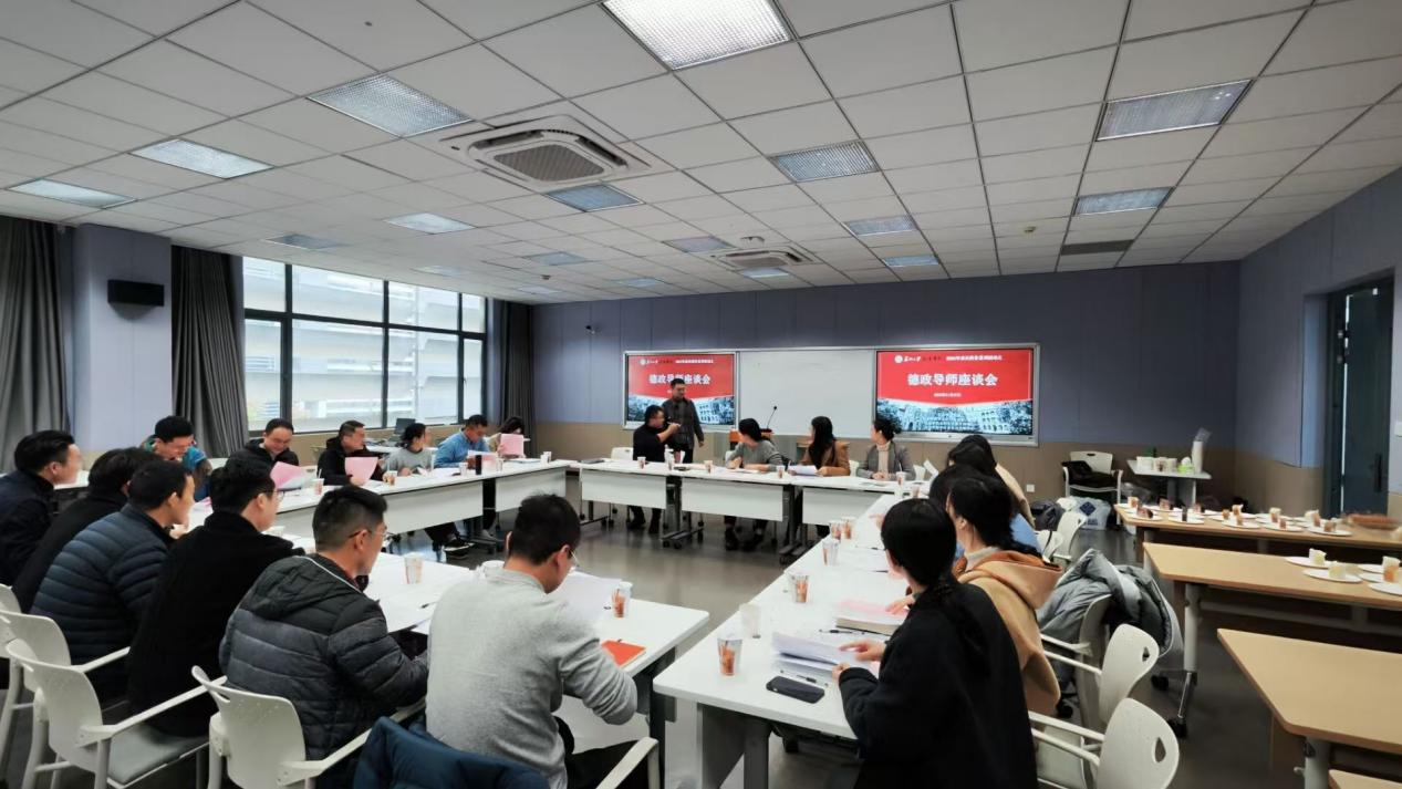 德政导师工作交流座谈会在独墅湖校区二期1005幢5433会议室举行。学院领导、全体辅导员、部分导师代表出席会议。