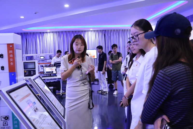 在汇博机器人公司相关负责人的引导下,同学们首先参观了企业的机器人展厅、多功能实训区和研发测试区域。各式各样的研发设备,智能化的产线系统等一系列高科技产品令人印象深刻,生动诠释了机器人技术作为新质生产力引擎,在赋能工业制造转型升级、助力智慧生活提质增效等领域的实践价值。现场的多功能智能系统和研发设备让大家深切感受到了“科技是第一生产力”的现实图景和创新驱动发展战略的实践成果。