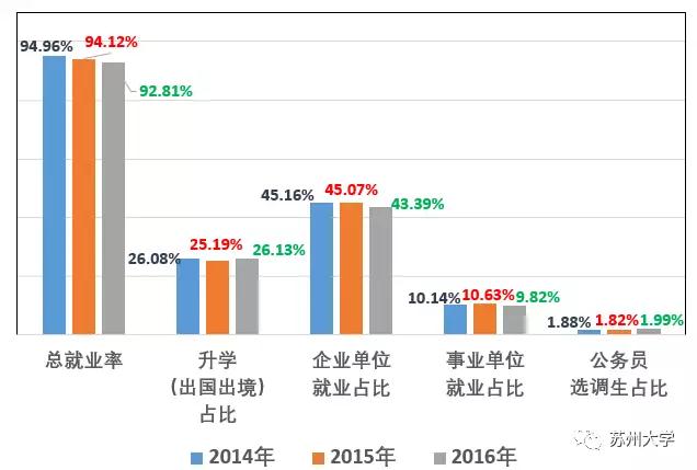 2014-2016届本科毕业生就业情况: