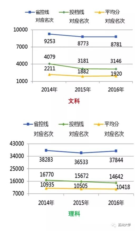 近三年江苏省本一对应名次统计(非中外合作办学):