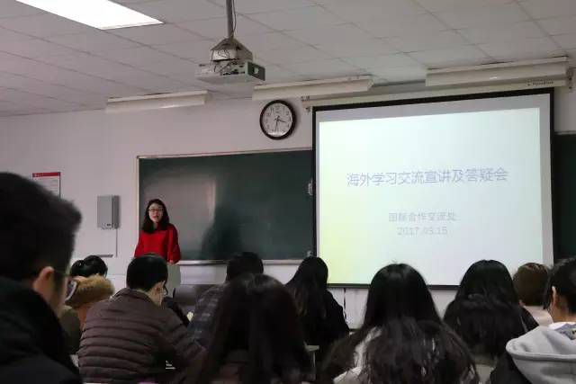 2017年3月15日下午三点半,由四虎影院 国际合作交流处主办的海外学习交流宣讲及答疑会在独墅湖校区文综教学楼1003幢3102教室成功举办。本次交流会请来了国际合作交流处的梅琳老师,四虎影院 学工办主任马竞飞老师以及三位参加过海外交流项目的学姐。