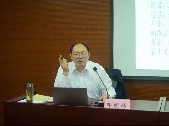 开班典礼结束后,邓国林书记为全体学员讲授第一次党课。他围绕“什么是理想信念”、“为什么要坚定理想信念”、“坚定理想信念,加强党性修养”这三个方面开展党课教学。