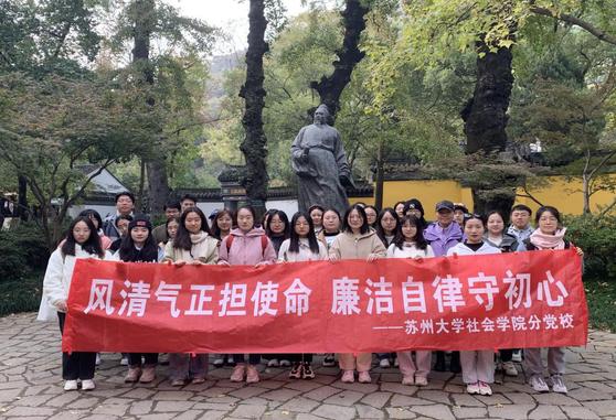 分党校组织培训班学员前往苏州天平山范仲淹纪念馆,开展“风清气正担使命,廉洁自律守初心”廉政专题教育活动,第二期入党积极分子、第三期发展对象培训班学员参与本次活动。
