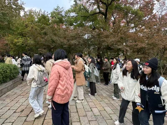 集体参观范仲淹纪念馆后,学员们自行在天平山游览:在范仲淹十七世孙移种的古风香树林中重走先贤足迹;漫步十景塘、放生池、白云池,欣赏鲜艳缤纷的秋景;登高沿途参观古木石刻,在满园秋色中领悟范仲淹“先忧后乐”的高尚情怀和“谦恭自律”的志士情操。