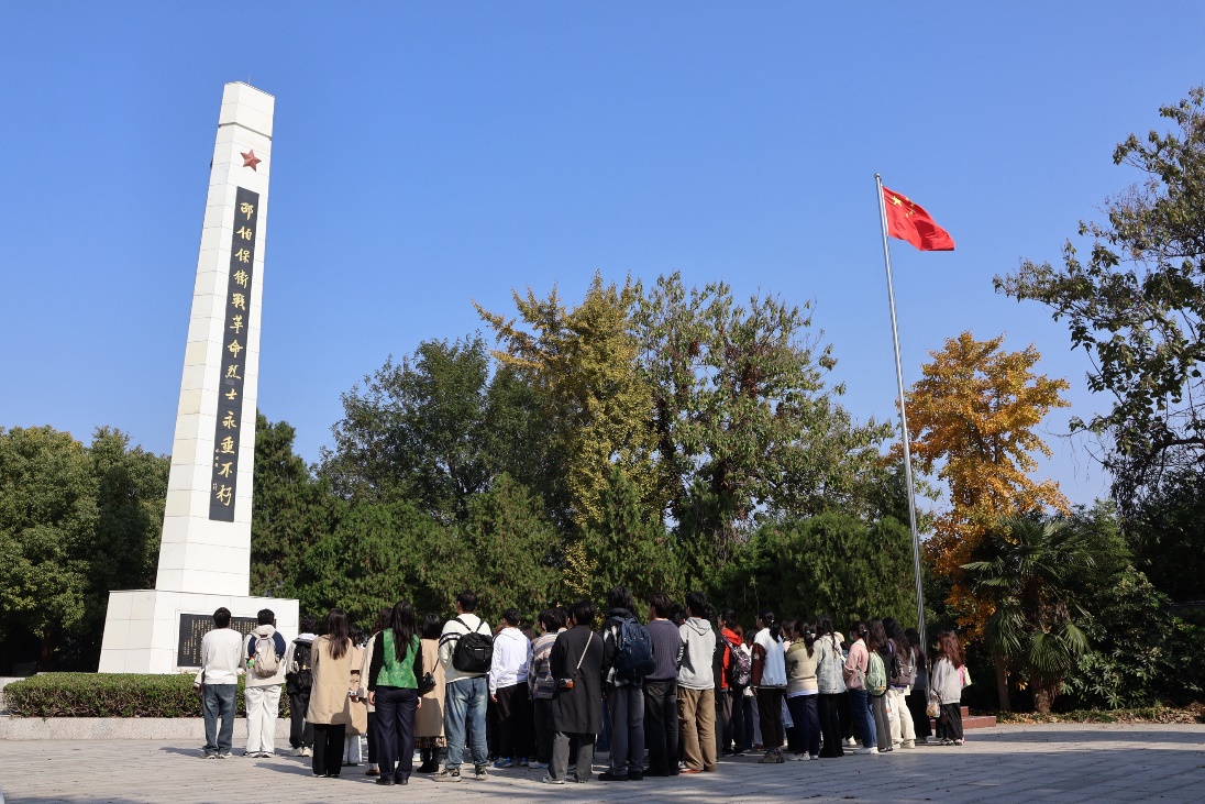 考察团在邵伯保卫战烈士陵园纪念碑前缅怀英雄
