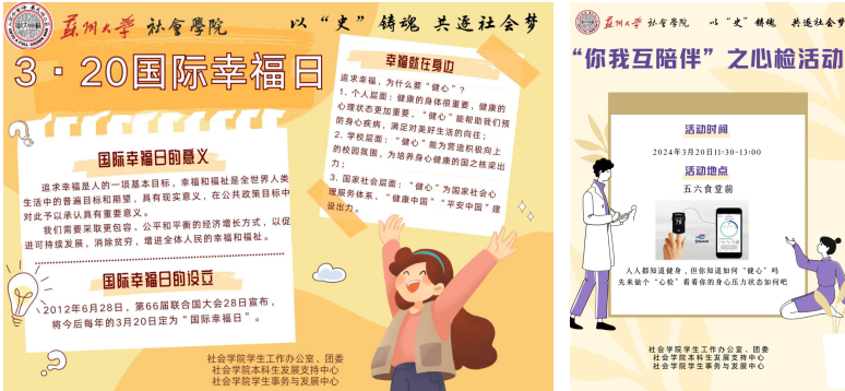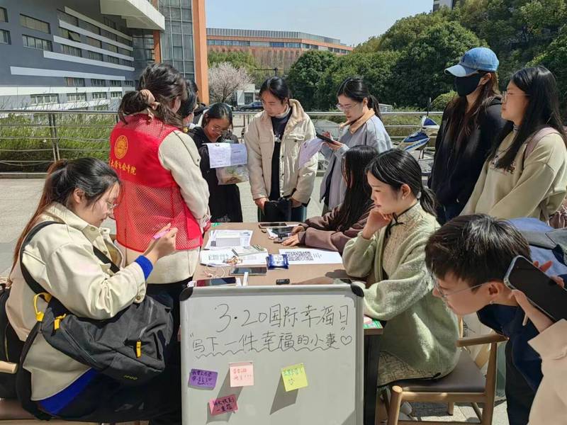 独墅湖校区南区五六食堂前组织开展了“3·20国际幸福日”“你我互陪伴”之心检活动。