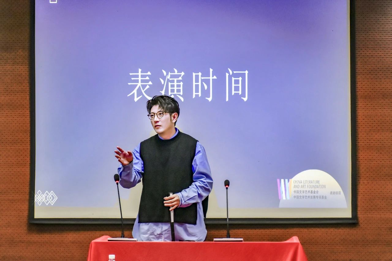 讲座的主题是“我的相声第一课”,以相声的四门功课“说”、“学”、“逗”、“唱”为四个板块。