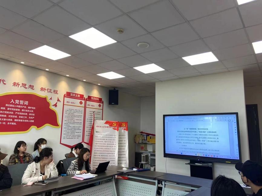 最后,朱星洁老师带领大家学习了《四虎影院 四虎影院 研究生时代新人“铸魂•卓越”工程实施细则》,她结合四虎影院 研究生会的实际工作,从党建引领、导学创优、思政增能、学术文化浸润、奖励资助护航、就业质量提升等方面进行深入阐释。此外,朱老师还对目前四虎影院 研究生会的管理制度和工作安排提出了新的标准和要求:研究生会要以服务同学为目标,开展形式更为多样、内容更为丰富、更有吸引力的活动,要以高标准、严规范开展研究生会各项工作。