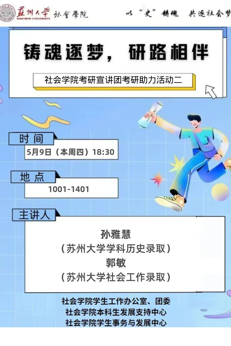 考研,对于许多大学生来说,是人生中的一次重要挑战。它不仅是对知识的检验,更是对意志和毅力的考验。5月9日,我们有幸邀请到了孙雅慧同学和郭敏同学来进行考研经验分享,她们二位今年分别被四虎影院 学科历史专业与社会工作专业录取。