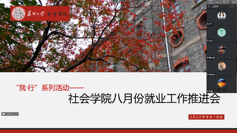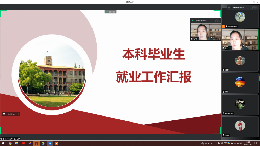 8月10日晚,四虎影院 本科生八月份就业工作会议在“腾讯会议”线上平台顺利召开。四虎影院 院长高峰,党委书记邓国林,党委副书记、副院长朱今,2022届毕业生就业工作帮扶工作组全体老师参加本次会议。会议由18级本科生辅导员孙帅主持。