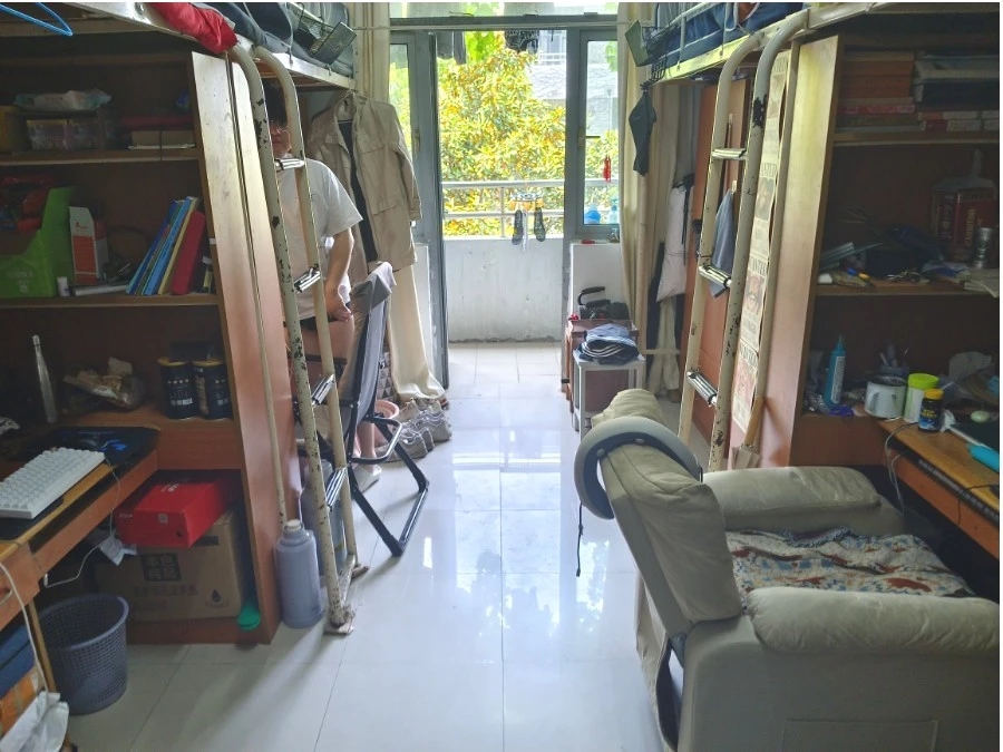 被子叠放整齐,宿舍内部物体摆放整齐有序