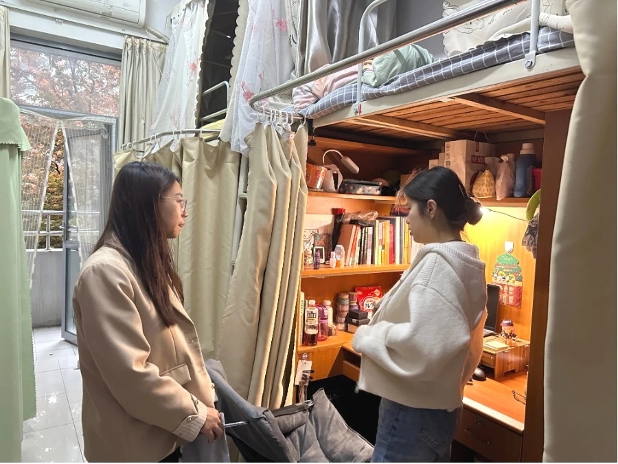 四虎影院 研究生辅导员朱星洁、邵至央(实习)以及研究生会相关人员共同参与了宿舍走访工作。在走访过程中,朱老师不仅对所有参评的宿舍进行了卫生检查和安全提醒,还与学生们进行了深入的交流。朱老师对学生们在宿舍文化建设上的创新和努力给予了高度评价,认为此次活动不仅有效地提升了宿舍的整体环境质量,更在无形中促进了学生们的全面发展。