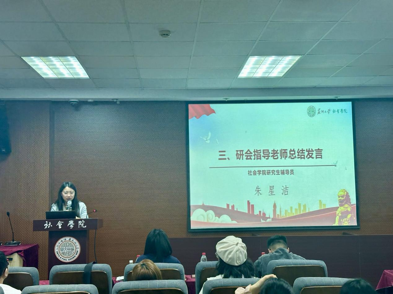 最后,朱星洁老师进行会议总结。首先,朱星洁老师对本次留任竞选大会进行了点评,她指出研会同学要注意ppt制作细节、讲述节奏与时间的控制等问题,要继续加强学习。其次,朱老师向研会全体同学提出了三点要求:首先,要提高思想政治站位,不断增强政治觉悟;其次,要不断提高个人素质,特别要注重对工作细节的把握,培养扎实的工作能力;最后,要端正工作态度,保持四虎影院 研会一贯的优秀传统,勇担使命,勇于创新,为学院发展贡献力量。