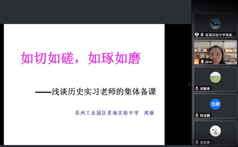 2020年6月19日晚,苏州市工业园区星海实验中学高中部历史教师周雄老师应邀在腾讯会议作了题为《如切如磋,如琢如磨——浅谈历史实习老师的集体备课》的学术讲座。讲座由冯世明老师主持,历史系崔恒秀、张井梅老师以及16、17、18级历史学本科生、学科教学(历史)专硕研究生共五十余人参加。