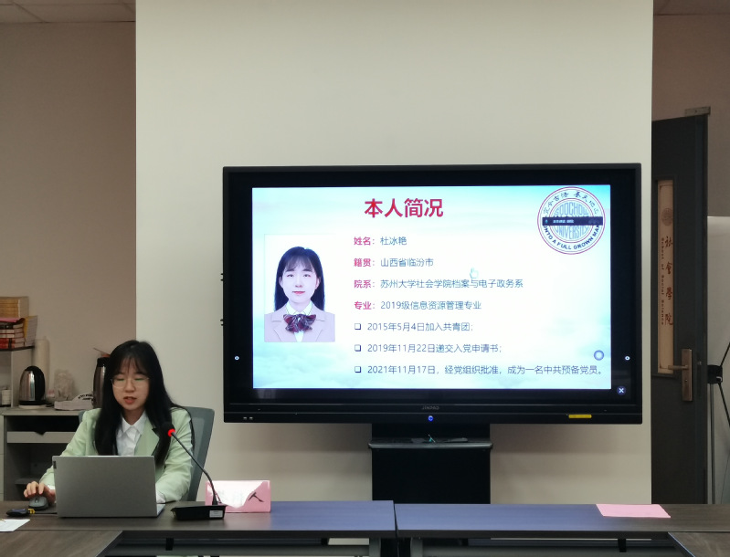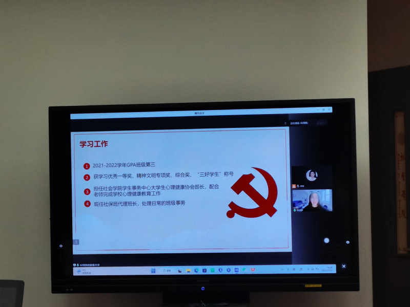 为深入推进学院党建工作,加强对学生预备党员的培养、教育和考察,根据《江苏省大学生党员发展工作三投票“三公示一答辩”实施办法》要求,11月30日下午,四虎影院 在学院党建会议室举行第18期预备党员转正答辩会。学院党委副书记兼副院长朱今、本科生第二党支部书记李玲、研究生第二党支部书记朱星洁、研究生第三党支部书记李晓梅、本科生第二党支部副书记刘玥出席此次答辩会并担任答辩评委。答辩会由2020级社会学专业龙超腾同学主持。